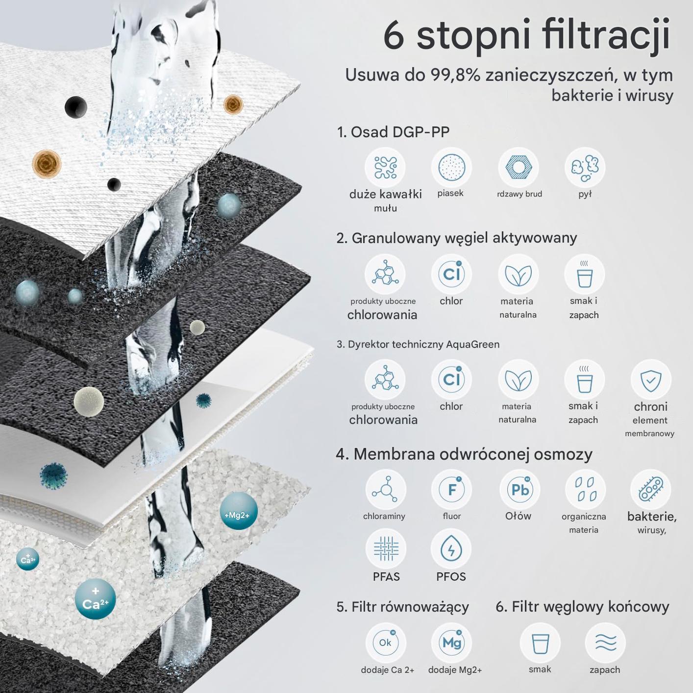 System skutecznie usuwa zanieczyszczenia, bakterie oraz niepożądane substancje, a następnie wzbogaca wodę w cenne minerały.